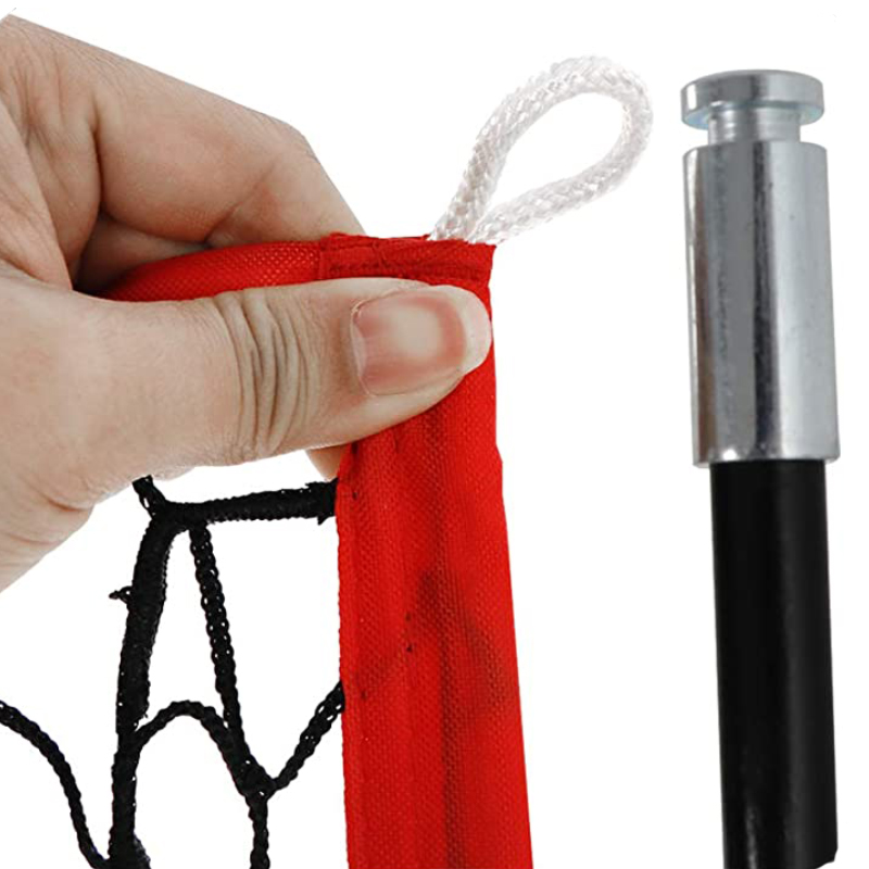 The "bow" in the poles, which allows the poles to flex and puts less stress on the baseball net, comes with 4 ground stakes, each leg has rubber feet for added stability, stay sturdy in windy days!